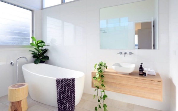 Bạn chỉ cần đặt vài chậu cây cảnh để bàn nhỏ hay bình hoa để gợi sắc thái tươi mới. Nếu diện tích cho phép, bạn vẫn có thể trang hoàng phòng tắm với các loại cây lớn để tạo cảm giác về với thiên nhiên.