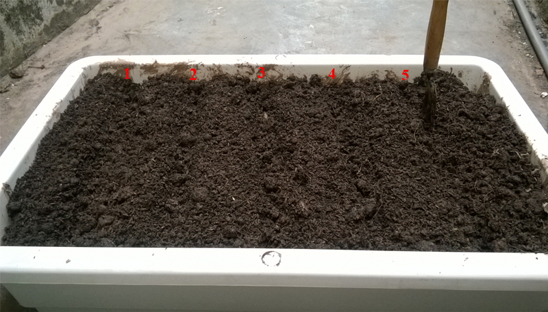 – Bước 3 : Gieo hạt thật mỏng lên 5 hàng bạn đã rạch ra . Một cách tương đối một hàng tương đương với 20-30 hạt giống rau.