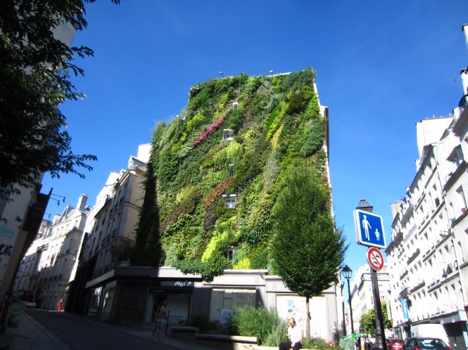 Paris của Pháp có nhiều bức tường xanh nhất thế giới khi nhiều trung tâm thương mại, mặt tiền các văn phòng… khoác lên mình tấm áo xanh màu thiên nhiên.
