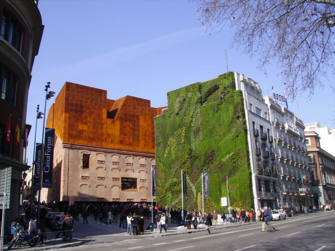 Khoảng 15.000 cây cảnh thuộc 250 loài khác nhau được trồng trên mặt tiền tòa nhà cao 24m của Bảo tàng CaixaForum, Trung tâm văn hóa ở Madrid, một tòa nhà cổ xây dựng vào đầu thế kỷ 19. Và khu vườn thẳng đứng này nhanh chóng nổi tiếng trên bản đồ du lịch thủ đô Tây Ban Nha…