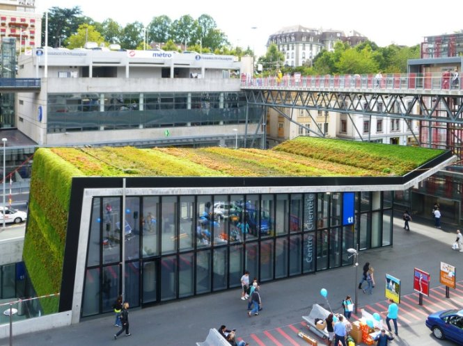 Một trong những công trình xanh đón khách nhiều nhất Lausanne là Trạm điện ngầm M2 ở phố Flon.